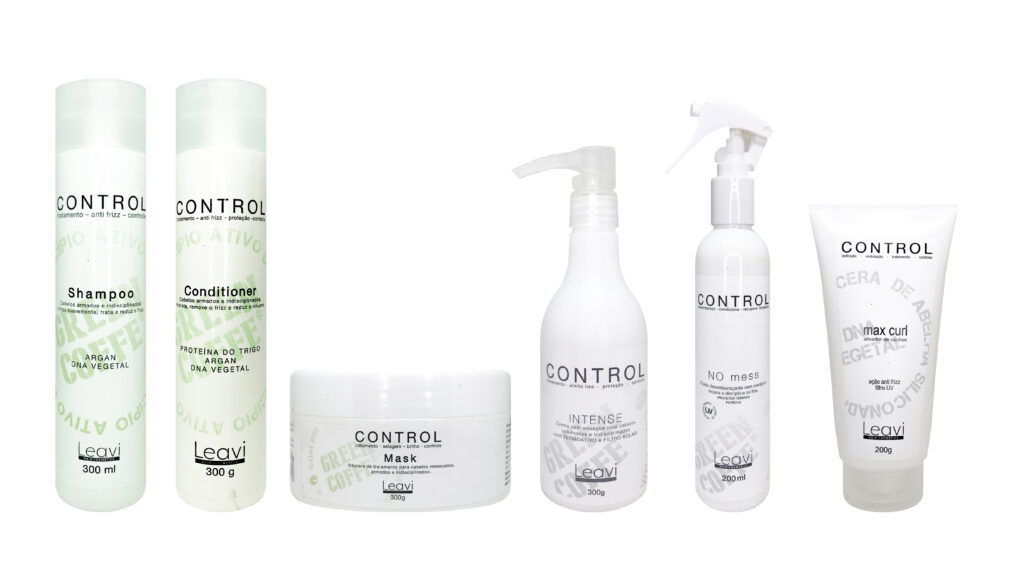 A Linha Control é indicada para cabelos armados e volumosos, com progressiva ou qualquer tipo de química. Pode ser usada diariamente. proporciona redução de volume, menos frizz, desembaraço, limpeza suave e tratamento. Sua ação é potencializada pelo ‘Green Coffee’ que melhora o aporte de nutrientes entre os fios. Sua alta ação antioxidante protege os fios das agressões diárias. Sem Sal.